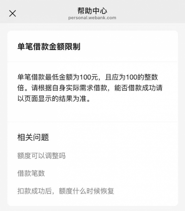 2、微粒貸的單筆借款金額限制及筆數(shù)上限