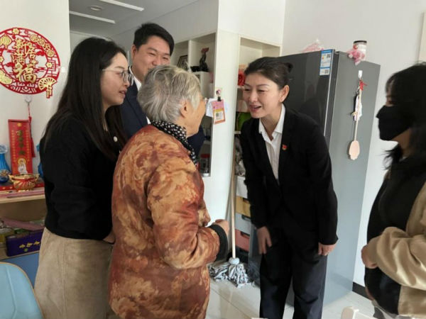 說著,便熱情地要給大家拿牛奶,溫暖的場景讓志愿者們感動不已。志愿者們也關切地仔細詢問她近期的生活和身體情況,反復囑咐她一定要照顧好自己。在另一戶人家,80歲的葛大爺因病長期依靠輪椅生活,與老伴張大娘相互扶持、相依為命。當見到志愿者們前來慰問時,張大娘格外激動,緊緊拉著志愿者的手,不停地連聲道謝。直到志愿者們離開,張大娘仍依依不舍,一直目送大家遠去。
