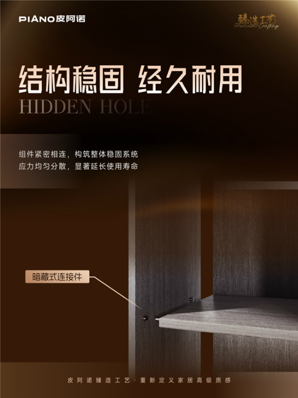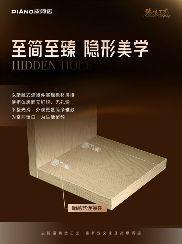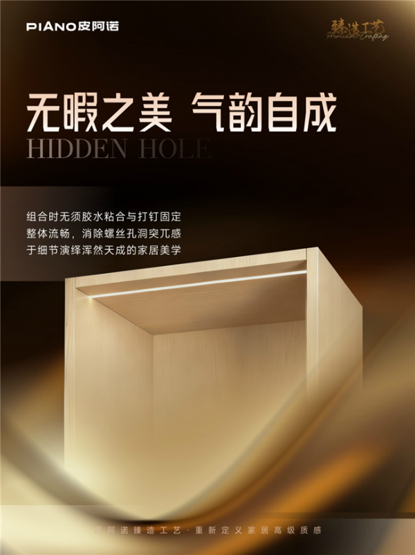 當(dāng)家居消費(fèi)進(jìn)入 “顏值與實(shí)用并存” 的新時(shí)代,人們對(duì)柜體設(shè)計(jì)的要求愈發(fā)嚴(yán)苛 —— 既要簡約雅致的視覺呈現(xiàn),又要環(huán)保耐用的實(shí)用屬性。皮阿諾深耕家居領(lǐng)域多年,重磅推出隱孔工藝,以 “結(jié)構(gòu)隱于形,大美歸于簡” 的核心理念,將美學(xué)設(shè)計(jì)與實(shí)用功能完美融合,為消費(fèi)者帶來全新的家居解決方案。
